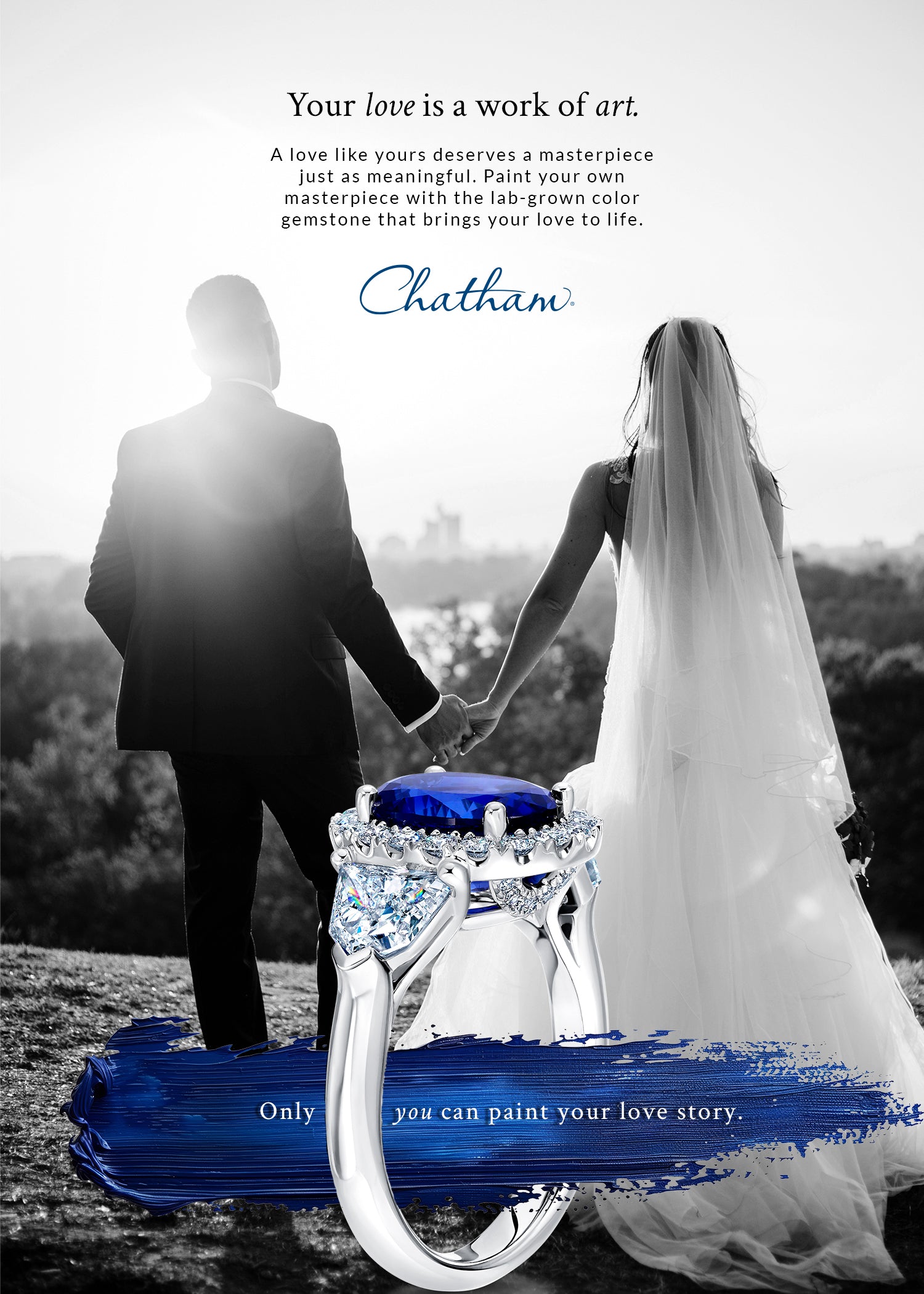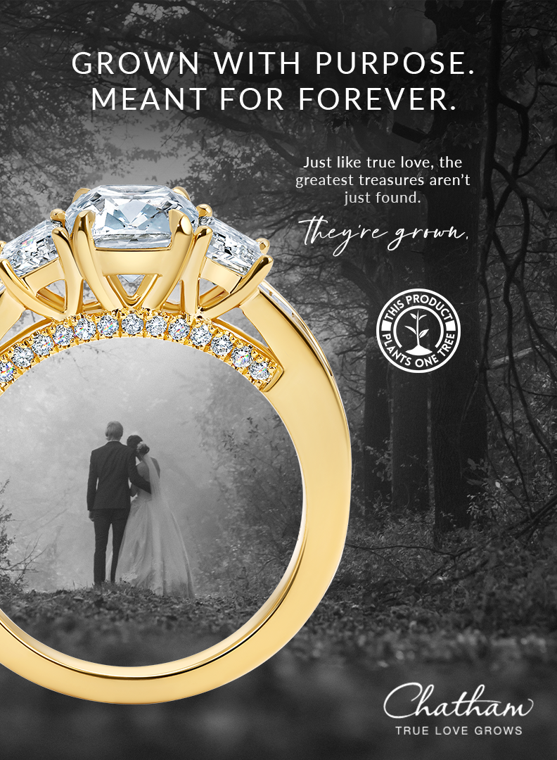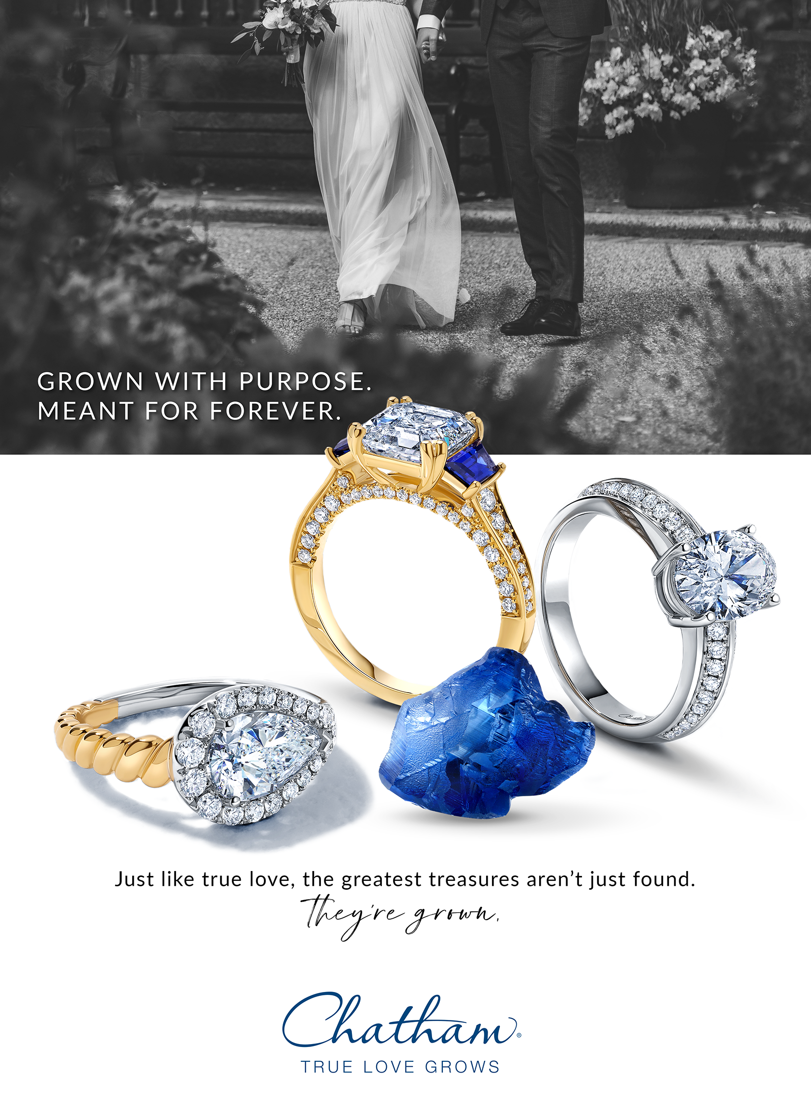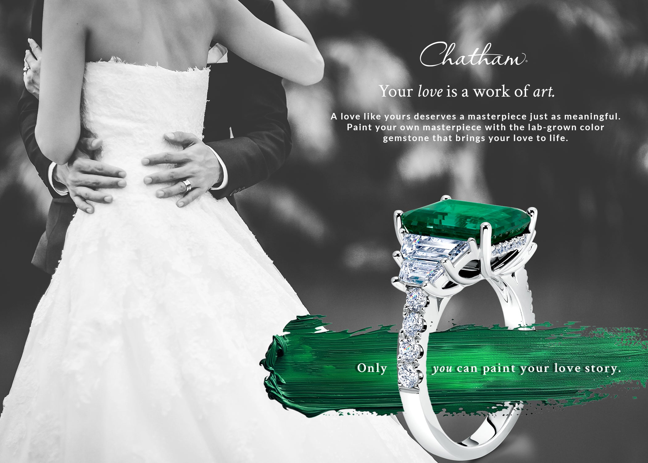 This campaign showcases how lab-grown diamonds and gems enhance an engagement ring with responsible modern luxury. For lab-grown diamonds, don't forget to mention that only Chatham offers you a diamond that grew while your love for one another was growing. Visit our lab-grown diamonds page for more information.