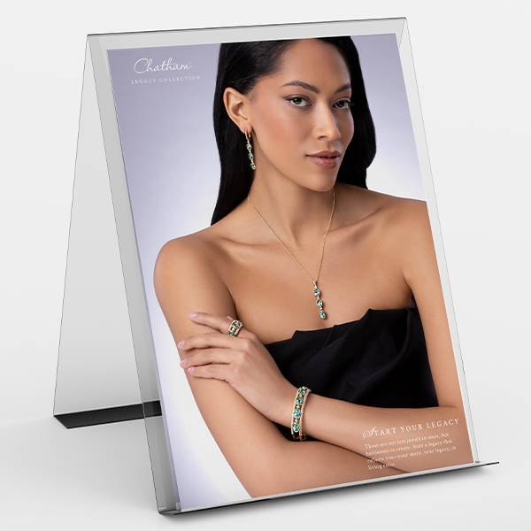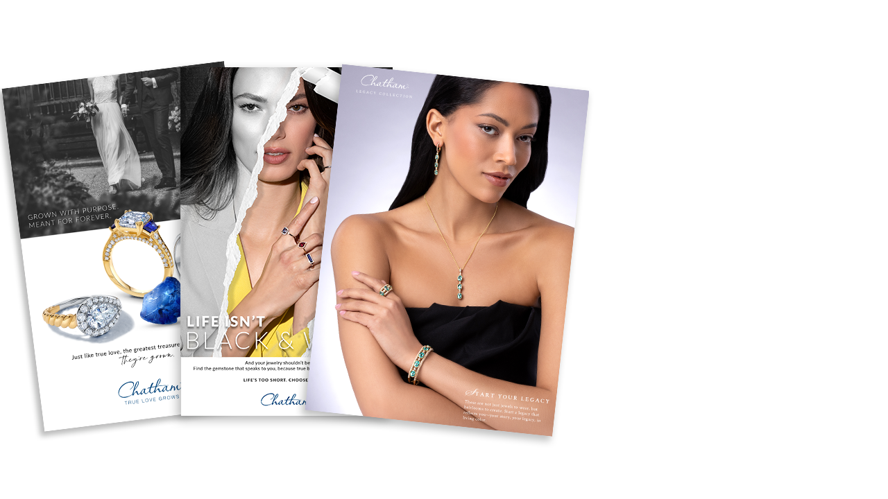 Reach out to marketing@chatham.com with the campaign, ad dimensions, featured jewelry SKU, print specifications if applicable, and any further customization requests. Please note: any Chatham advertising that has not been pre-approved by marketing will not qualify for co-op reimbursement.