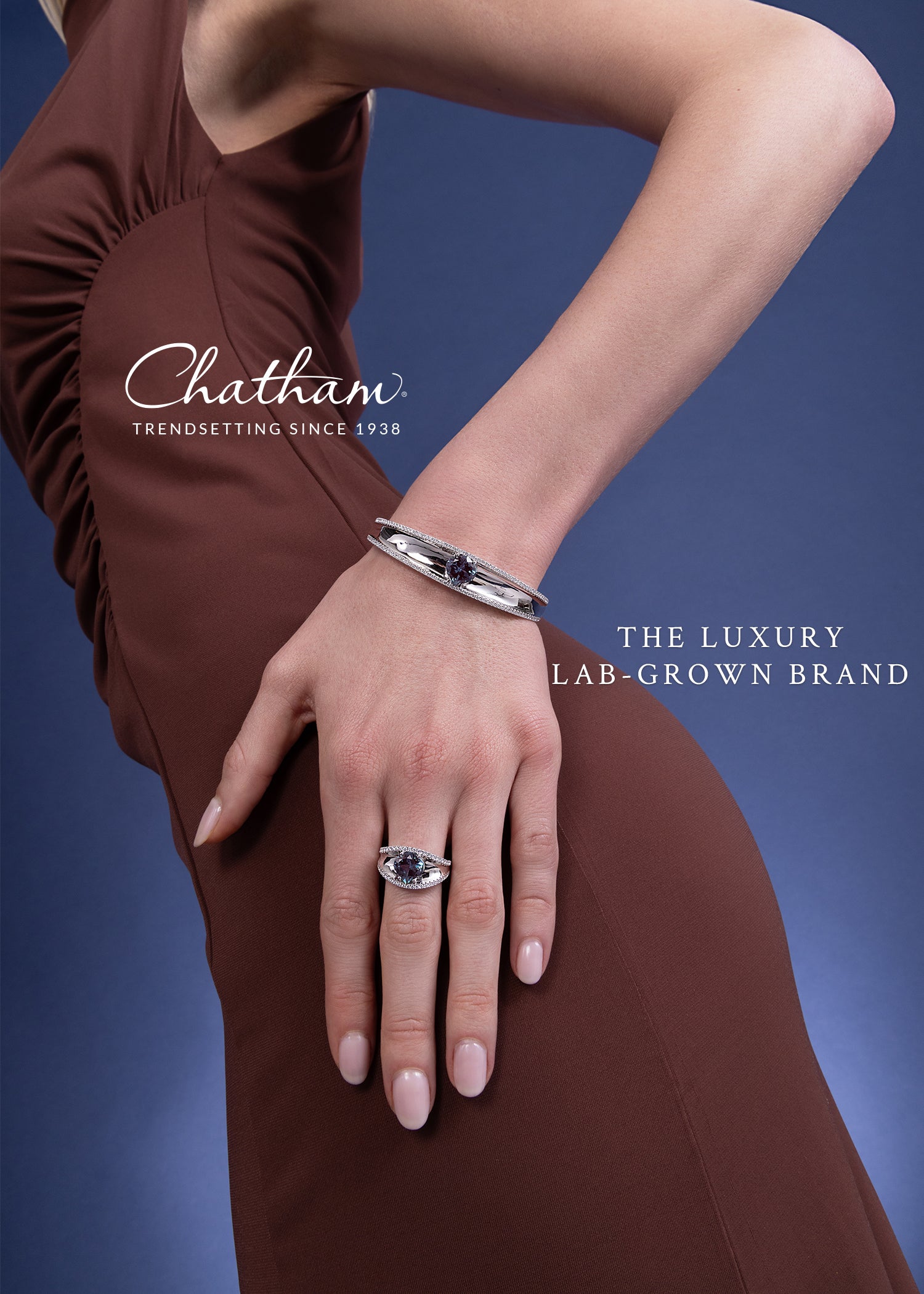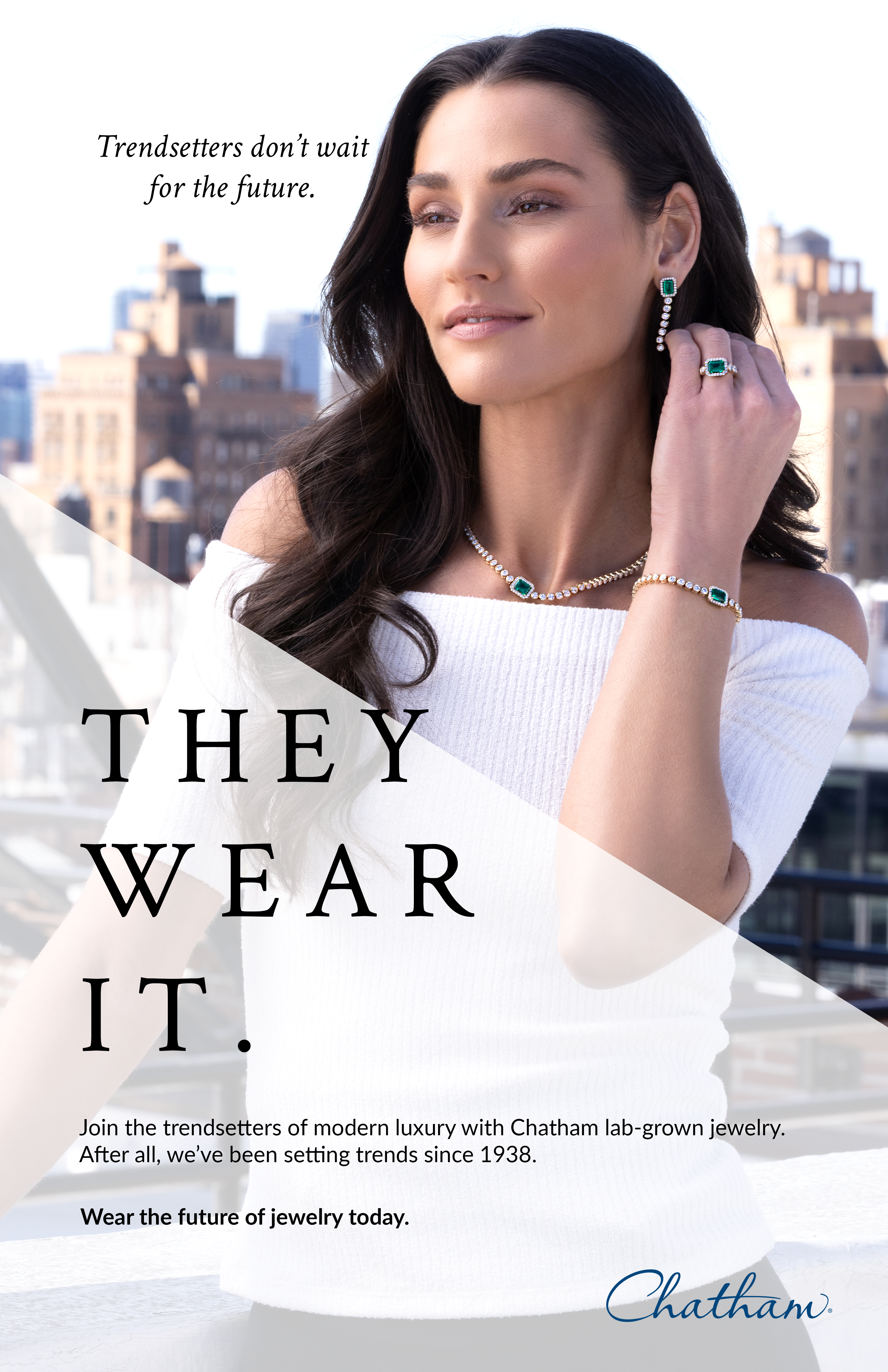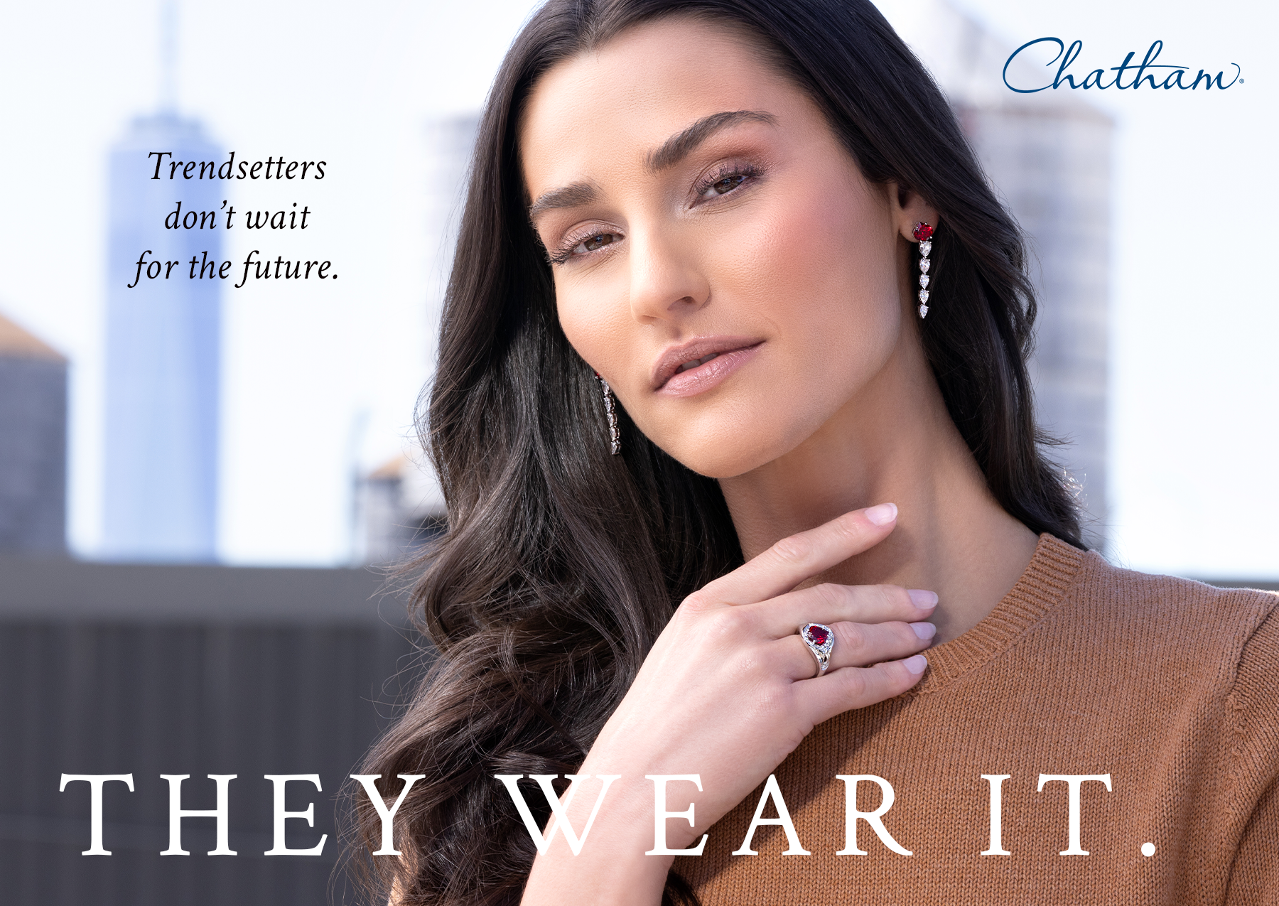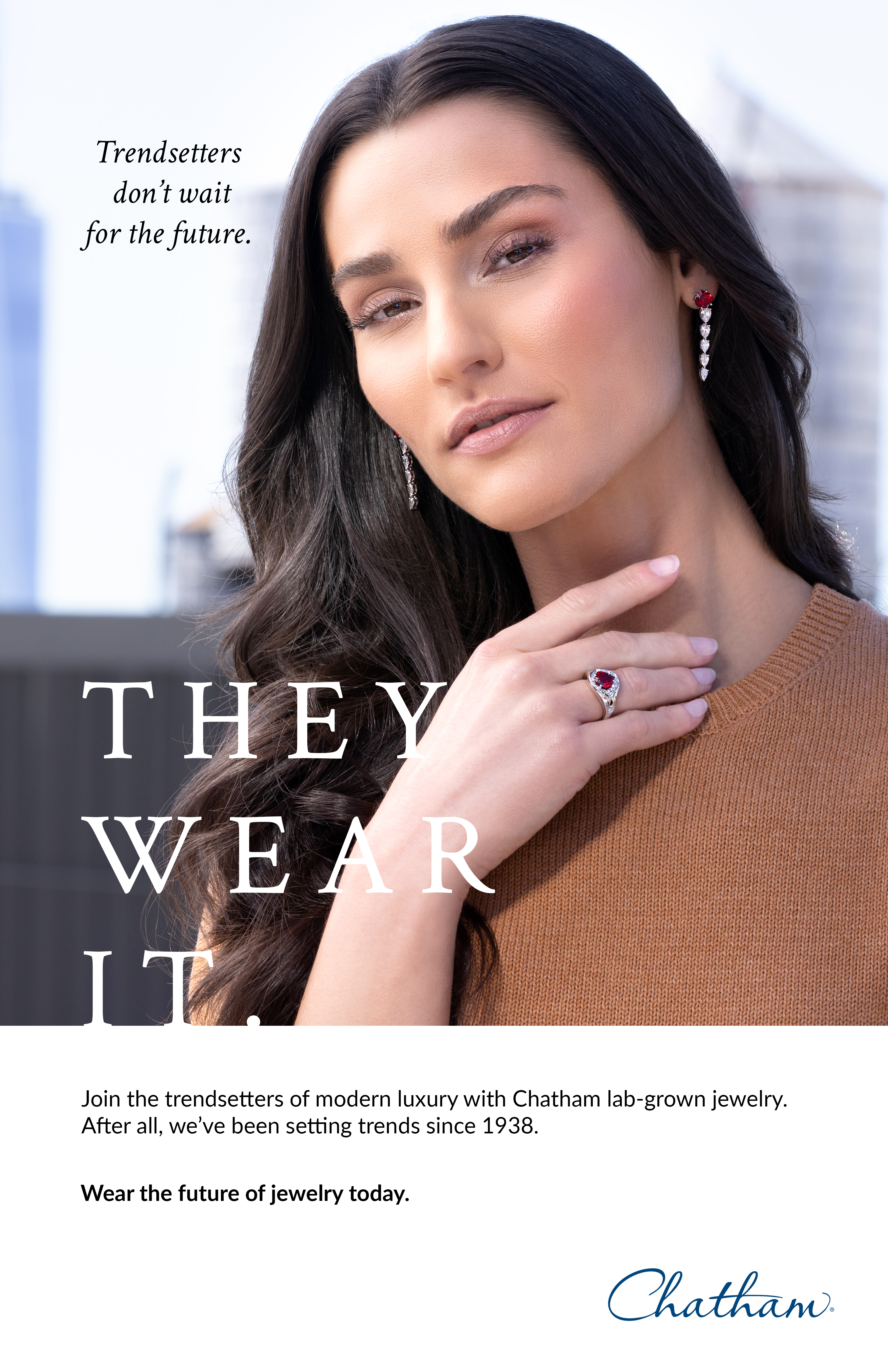 Ad copy:Join the trendsetters of modern luxury with Chatham lab-grown jewelry. After all, we've been setting trends since 1938. Wear the future of jewelry today.