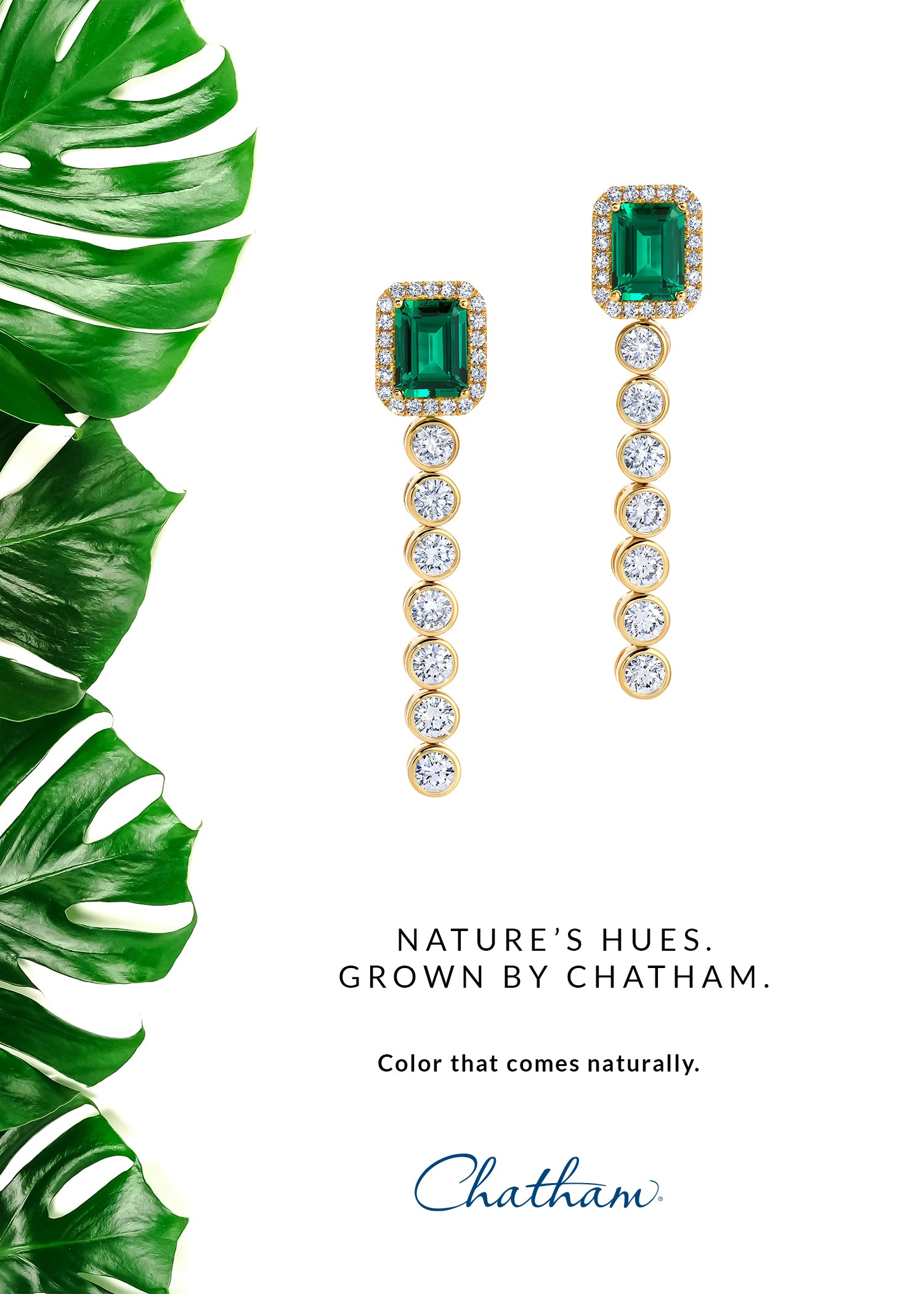Ad copy:Chatham lab-grown emeralds evoke vitality, renewal, and the richness of life. Inspired by nature and destined to turn heads.