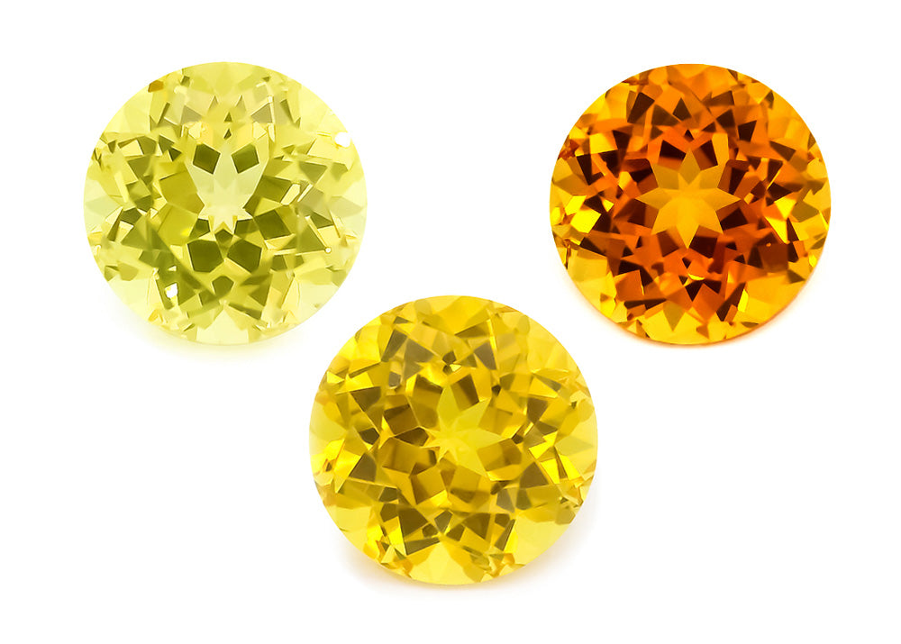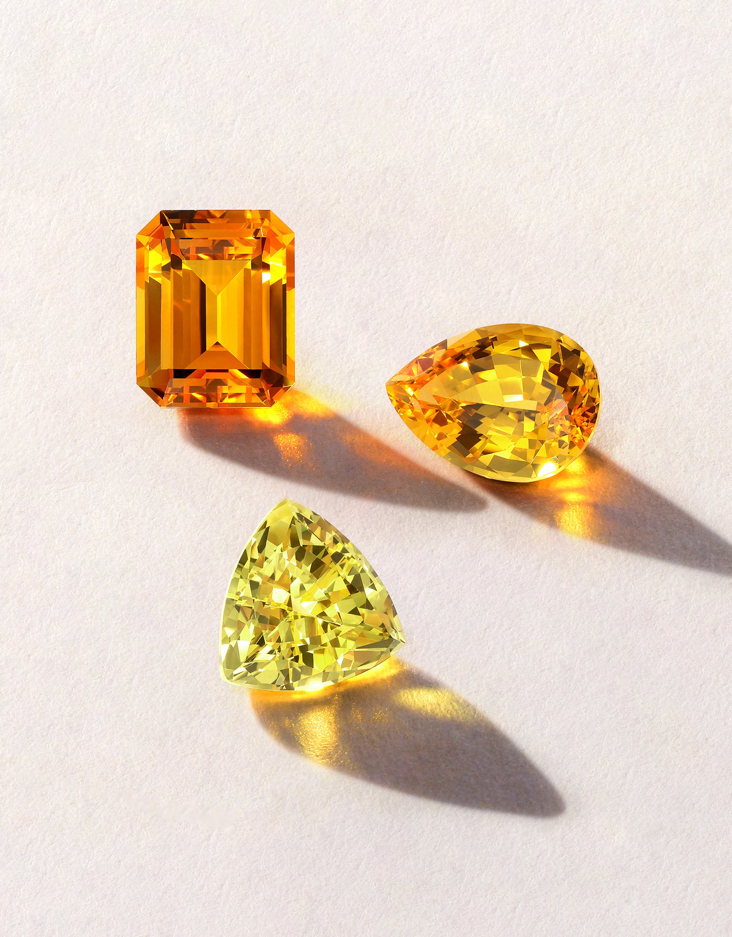 Chatham lab-grown yellow sapphire is available in light, medium, and dark.